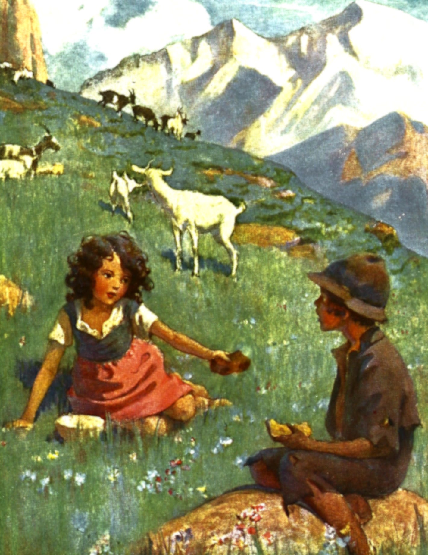 “Because he is sneering at the people down below, who sit in the villages and make each other angry. He calls down to them:—’If you would go apart to live up on the heights like me, you would feel much better!’” The grandfather said these last words with such a wild voice, that it reminded Heidi of the eagle’s screech.